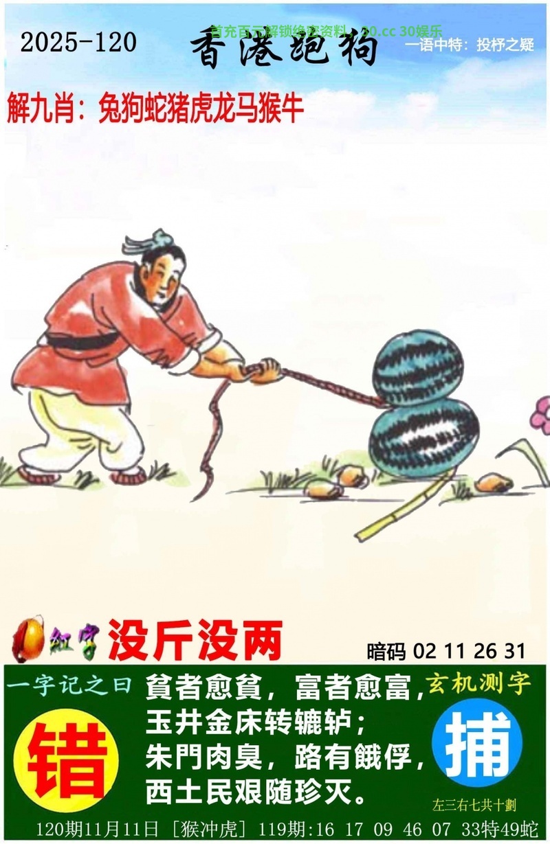 | 120期:金牌七肖【龙牛蛇猪兔猴虎】开:牛41中 |